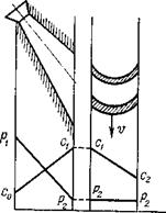 Если перед входом в сопло пар имел некоторую начальную скоростьсо иначальное давление р1 (рис. 4), то после выхода из сопла врезультате расширения пара происходит увеличение его скорости до величины с1 и уменьшение давления до величины р2-Температура пара при этом также значительно понижается.