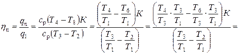 - коэффициент, учитывающий соотношение полезно полученной работы и теплоты, подведенной в испарителе и пароперегревателе котла-утилизатора. Термический КПД паровой части цикла определится следующим выражением: