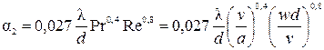 При охлаждении водой трубчатых элементов коэффициент теплоотдачи рассчитывается как