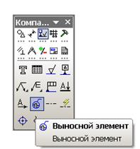 На инструментальной панели выберите команду Обозначения – Выносной элемент. Проверьте, является ли вид Текущим!!! Следуйте указаниям компьютера (рисунок 50).