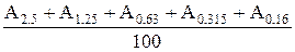 где А2.5, А1.25, А0.63, А0.315, А0.16- полные остатки на ситах.