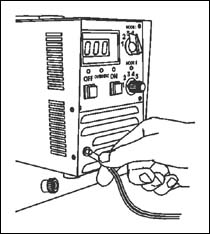 - Подсоедините к разъему заземления блока питания провод заземления с держателем присадки (см. рис.).