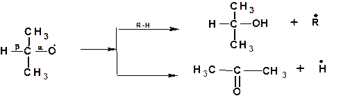 Радикалы третичных гидроперекисей распадаются с образованием третичного спирта или кетона, по схеме: