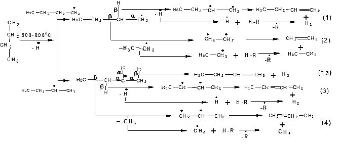 Свободные радикалы, образующиеся в процессе крекинга, способны к следующим превращениям: