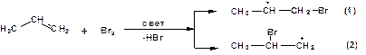 На следующей стадии радикал брома присоединяется к олефину. При этом возможно образование двух радикалов: