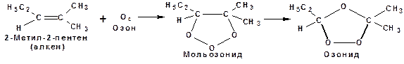 Для определения строения олефинов в качестве специфического окислителя исмпользуется озон (Реакция озонирования). Озонолиз включает две последовательные стадии