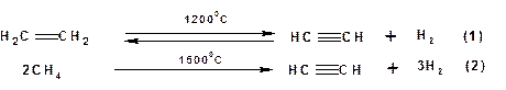 Пиролиз этилена и метана при очень высокой температуре ведет к получению ацетилена. В этих условиях ацетилен термодинамически нестабилен, поэтому пиролиз проводят за очень короткие интервалы времени (сотые секунды):