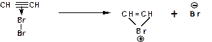 Электрофильное присоединение (AdE) галогенов: хлора, брома йода к ацетиленам идет с меньшей скоростью, чем к олефинам. При этом образуются транс-дигалогеналкены. Дальнейшее присоединение галогенов идет с еще более низкой скоростью: