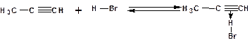 Алкины реагируют с хлористым водородом и бромистым водородом подобно алкенам. Галогенводороды присоединяются к ацетиленовым углеводородам в две стадии по правилу Марковникова: