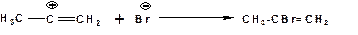 В таких реакциях скорость 100-1000 раз ниже, чем в реакциях с участием алкенов. Соответственно процесс может быть остановлен на стадии монобромида. Введение атома галоида снижает реакционную способность двойной связи.