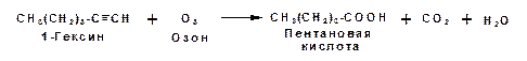 Следует отметить, что при окислении терминальных алкенов и алкинов одним из продуктов окисления является углекислый газ. Его выделение можно наблюдать визуально и тем самым можно отличить терминальные от внутренних ненасыщенных соединений. При окислении последних выделение углекислого газа не будет наблюдаться.