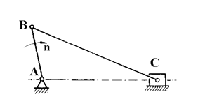 ползунного механизма: АВ – кривошип, ВС – шатун, С – ползун, n – частота вращения кривошипа вокруг шарнира А (обороты в минуту).