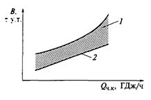 Рис.13.1. Расходная характеристика котла: / — потери; 2 — полезная теплота