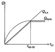 котором оба режима равноэкономичны (рис. 13.21). До критической точки целесообразно поддерживать агрегат на холостом ходу, а если Т.пр > Ткр, то выгоднее полностью отключить агрегат. Аналогично решается вопрос об остановах котлоагрегатов.