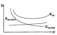 Число однотипных агрегатов, установок также оказывает влияние на уровень удельных капитальных затрат. При увеличении числа агрегатов снижается доля условно-постоянных затрат, приходящаяся на единицу мощности энергетического объекта. В случае высокой концентрации мощности (число агрегатов превышает 10... 12 единиц) удельные капиталовложения могут возрастать за счет удорожания транспортных связей при учете капитальных затрат на строительство ЛЭП, тепловых сетей и т.д. (рассматривается энергетическая цепочка). Поэтому существует оптимальное наименьшее значение удельных капитальных вложений, которому соответствует предельное число агрегатов, располагаемых на одной территории. Для обеспечения надежности энергоснабжения могут создаваться резервные установки, что приводит к увеличению удельных капитальных вложений.