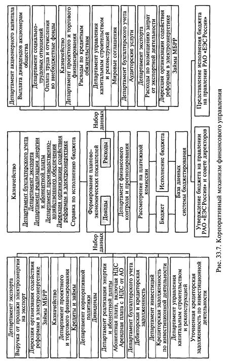 На основе обобщенной экономической модели финансового управления РАО «ЕЭС России» в рыночных условиях разработан механизм финансового управления, представляющий собой интегрированную структуру процессов формирования бюджета, его исполнения и обеспечения общего баланса доходов и расходов. Формирование сводного бюджета компании осуществляется через блоки бюджетов основной, инвестиционной и финансовой деятельности. Учитывая специфические условия функционирования энергетики России, обусловленные ее территориальной рас-пределенностью и многочисленностью участвующих в производственном процессе структурных подразделений, необходима адаптация этого механизма для корпоративного финансового управления. Это удается обеспечить за счет того, что на этапе формирования бюджетов выдвигаются контрольные показатели, которые проходят многократные согласования с заинтересованными сторонами: участниками бюджетного процесса, подразделениями, занятыми мониторингом и анализом казначейского исполнения бюджетов и разработкой управляющих воздействий по нейтрализации негативных тенденций в ходе исполнения бюджетов.