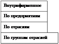 | Специализация на готовый однородный конечный продукт (готовая продукция) | Специализация на производство отдельных частей (деталей) будущего готового продукта | Специализация на выполнении отдельных операций или этапов технологического процесса |