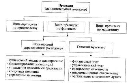В США основным лицом, отвечающим за организацию финансового менеджмента корпорации, является вице-президент по финансовым вопросам. Он, как правило, входит в состав совета директоров компании (рисунок 7).