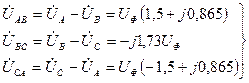 На рисунке 8 такая диаграмма показана в комплексной плоскости, что позволяет по аналогии с равенствами (9) и (10) получить комплексы линейных напряжений: