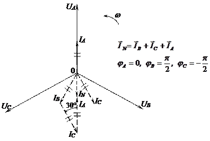 тока в нейтральном проводе, который равен, как в этом нетрудно убедиться с учетом показанных геометрических построений на рисунке 13
