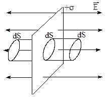 Построим замкнутую цилиндрическую поверхность с основаниями dS, параллельными заряженной поверхности и образующей, параллельной вектору