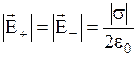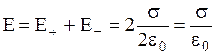 Рис.1.11. Определение напряженности поля двух параллельных разноименно заряженных плоскостей.