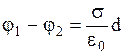 При расстоянии между пластинами равном d, их разность потенциалов равна
