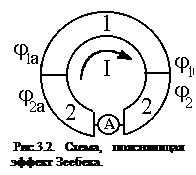 В 1821 г. Т.Зеебеком было открыто явление, названное термоэлектрическим эффектом. Оно основано на зависимости контактной разности потенциалов от температуры и заключается в следующем: если спаи двух разнородных металлов, образующих замкнутую цепь, поддерживать при различных температурах, то в такой цепи возникает электрический ток.