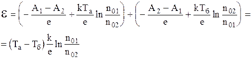 Если температура спаев одинакова, т.е. Та=Тб, скачки потенциала в спаях одинаковы по величине и противоположны по знаку и e=0 (см. I закон Вольты). Если температуры спаев а и б различные, например Та>Тб,, то контактная разность потенциалов в горячем спае будет больше, чем в холодном