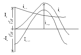 Через p/2 ударный ток в пределе может достигнуть двойной амплитуде установившегося тока, короткого замыкания т.е.