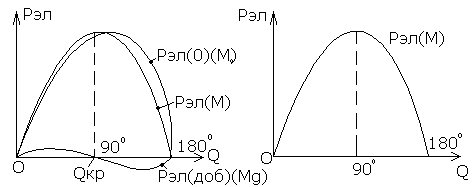Зависимости P = A(Q) и M = A(Q) называются угловыми характеристиками синхронной машины. Покажем на рис. 31 угловые характеристики для явнополюсного генератора, а на рис. 32 угловые характеристики для неявнополюсной машины.