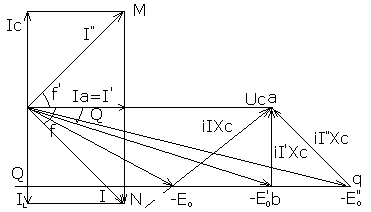 постоянство момента получается при E0sinQ=const, а следовательно -E0sinQ=const, поэтому, при изменении возбуждения, конец вектора –Е0 будет передвигаться по прямой Qq параллельно вектору Uc, т.к.