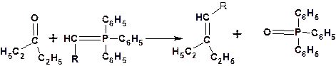 Стадия элиминирования присутствует в реакции Виттига, которая заключается в том, что фосфорорганическое соединение – так называемый фосфоран, производное пентаковалентного фосфора, вступает в реакцию замещения с карбонильными соединениями , в которой кислород замещается на алкилиденовый остаток: