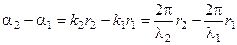 Разность фаз (a2–a1) в этом случае зависит от геометрической разности хода r2–r1 волн: