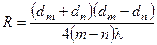 При расчетах удобнее пользоваться формулой, в которой радиусы колец заменены на их диаметры dm и dn