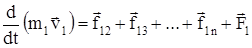 - внутренние силы, действующие на первую точку со стороны второй, третьей и т.д.