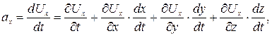 Выполним теперь формальный вывод зависимости для ускорения. В общем случае неустановившегося движения проекции скорости