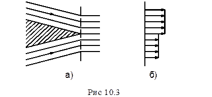 Такого рода поверхности могут возникнуть, например, при слиянии двух потоков позади ребра острого двугранного угла (рис. 10.3), если скорости потоков до их слияния отличаются по величине или направлению. В непосредственной близости позади ребра на поверхности раздела имеет место скачок скорости.