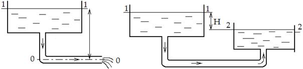 следующий: потенциальная энергия положения преобразуется в кинетическую энергию движущейся жидкости, которая частично превращается в тепло. Для схемы 2 имеем