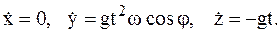 Если найти третье приближение, то одновременно с отклонением к востоку появится отклонение к югу, но это отклонение будет очень мало, так как в выражение для x войдет очень малая величина порядка w2.