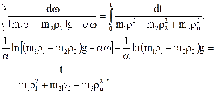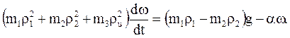 определить угловую скорость блока как функцию времени и условие того, что груз массы m1 будет опускаться. Массами нитей пренебречь. МС состоит из двух МТ и блока – АТТ.