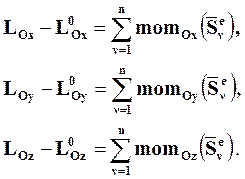 Проектируя соотношение (8.12) на координатные оси, получим скалярную форму теоремы об изменении кинетического момента при ударе: