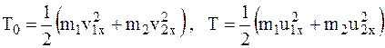 Предполагая, что соударяющиеся АТТ движутся поступательно, найдем кинетическую энергию СМТ, состоящую из двух АТТ, в начале и в конце рассматриваемого удара: