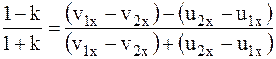. Следовательно, чтобы определить эти неизвестные, надо найти второе уравнение, которое получим, если задать дополнительно коэффициент восстановления