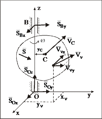 . Введем неизменно связанную с АТТ систему координат Охyz с осью Оz, которая направлена по оси вращения АТТ, и плоскостью уОz, проведенной через центр масс С.