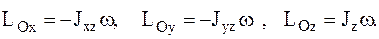 на оси декартовой системы координат Oxyz, получим проекции кинетического момента АТТ до удара на эти оси: