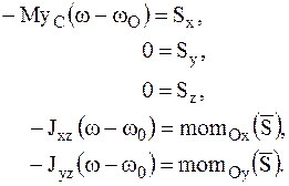 Из второго и третьего уравнений (8.23) следует, что для отсутствия ударных реактивных импульсов необходимо, чтобы приложенный ударный импульс был направлен параллельно оси Оx, то есть перпендикулярно плоскости yОz, которая проходит через ось вращения и центр масс АТТ (рис. 53).