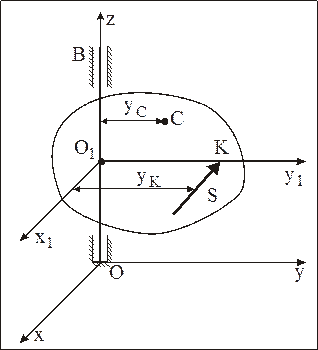 , если линия действия этого импульса будет проходить через точку К, которая отстоит от оси вращения z на расстоянии yК, определяемом формулой (8.26).