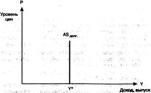 В данных условиях кривая AS вертикальна.Она характеризует естественный (потенциальный), уровень объема производства, т.е. объема производства в условиях полной занятости, при котором ресурсы экономики полностью используются, а безработица находится на естественном уровне.