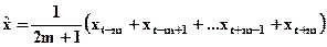 Метода скользящих средних. Прогноз любого периода получается как среднее по некоторому фиксированному числу значений временного ряда. Если в ряде нет сезонной составляющей используют 3, 5-точечное сглаживание. 2m + 1 интервал по которому идет скольжение по ряду.